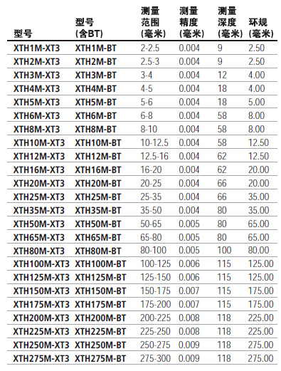 英國寶禾BOWERS XT3 XTH SXTH系列三點式數(shù)顯槍式內徑千分尺 測量范圍2-300mm 分辨率0.001mm 硬質合金測頭 內置藍牙發(fā)射模塊 無線數(shù)據(jù)傳輸 可測盲孔