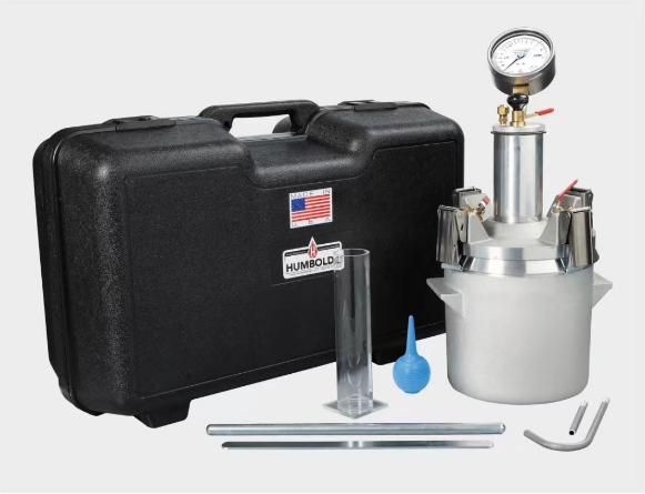 該儀器依照 BOYLE 定律,由一個帶法蘭的圓柱體容器,蓋子組成,并帶有一個空氣泵壓力表和閥門。由于壓力在兩個腔體內(nèi)平衡,所以大氣壓的變化對試驗結(jié)果沒有任何影響。該系統(tǒng)也可用于新拌混凝土和骨料的單位重量測量。