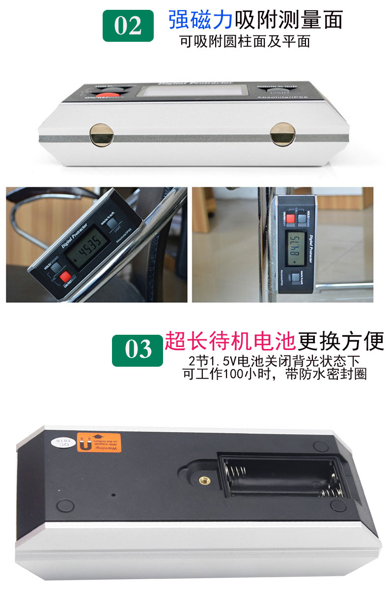 5、底面帶磁性,吸附鐵質(zhì)工件時(shí)更加可靠;(帶磁量面)
