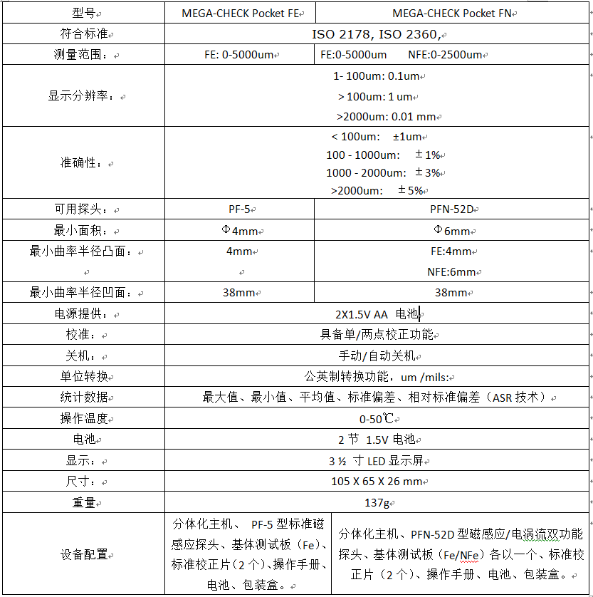 二、儀器型號:MEGA-CHECK Pocket FE/ MEGA-CHECK Pocket FN