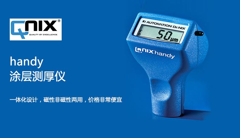 一體化設(shè)計(jì),磁性非磁性兩用,價(jià)格非常便宜。handy表面無任何按鍵,操作十分簡(jiǎn)單,顯示精度5um,測(cè)量范圍20-500um,適合涂層較厚,對(duì)精度要求不是特別精確的情況下使用。